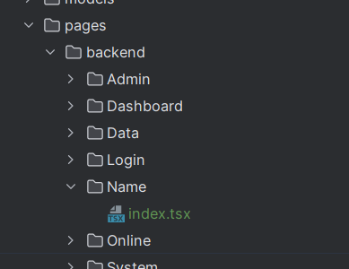 在 pages/backend 文件夹下 新建页面文件 Name / index.tsx ,并且插入以下代码
